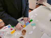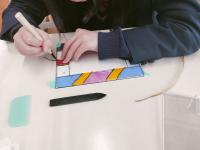 3年生活福祉系列選択科目「服飾手芸」の授業において、「グラスアート」の写真立てを制作しました。グラスアートは、ステンドグラスの雰囲気をそのままに、より簡単に、短時間で安全に作品を作ることができる新しいクラフトです。本日は、グラスアート講師の村田先生に基本から教えていただき、制作しました。それぞれが思い思いに、色合わせを楽しみ、楽しんで取り組むことができました。
