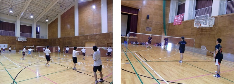 本校生徒が優しくバドミントンの基礎を教えました(写真左)。