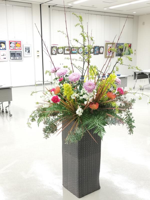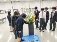 生徒が、それぞれの花材を用いた個人作品と1,2年生全員で取り組んだ共同作品を展示しました。