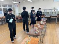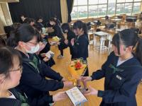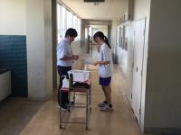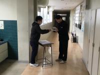 社会福祉協議会の方から取り組みの趣旨についてお話を頂いた後、早速各グループ代表生徒に福祉協議会の方からお弁当が託されました。