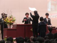 本校吹奏楽部は、マツケンサンバⅡなど3曲を披露しました。