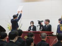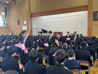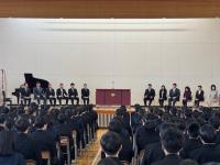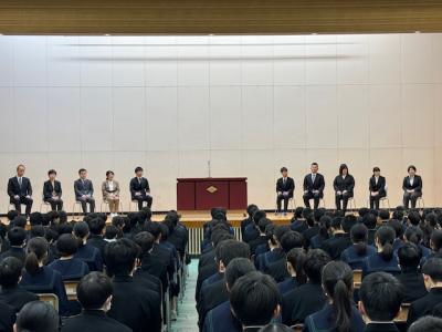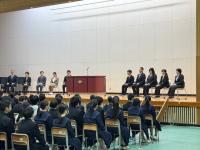まず、これまで学校を引っ張ってくれた令和7年後期生徒会役員を代表して会長の上出さんより、