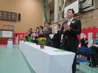 会長、副会長、書記、会計のポストに立候補した生徒が、それぞれに寺井中学校をこんな学校にしていきたいという抱負を述べました。