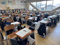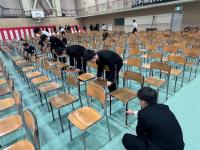 追伸:翌朝、登校した生徒から自分の机・イスを教室に入れるのですが、どのクラスでも早く登校した生徒がクラスメートの分も一緒に入れてくれていました。見えないところでも、仲間への優しさや思いやりを感じた瞬間でした。