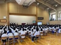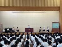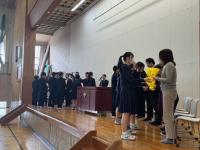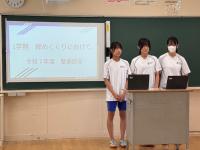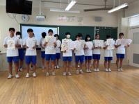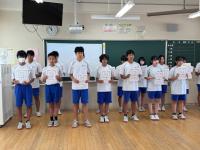 1か月ぶりの表彰伝達でしたが、部活動、各種コンクールやコンテスト、地域クラブなど、さまざまな分野でたくさんの生徒が活躍し、入賞や入選などを果たしました。