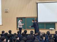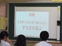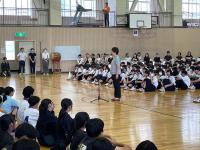 人との距離感や間合いのお話、10秒呼吸法など、ちょっとした心がけの工夫や日々の不安などについても、ユーモアを交えながらやさしい語り口調で、生徒も楽しく参加することができたようです。