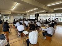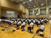 中学校より各種高等学校の受験に向けた日程や手続き、今後の進路日程などについて説明しました。