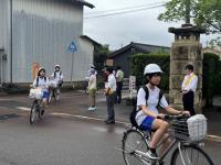 生徒は複数人でグループを作り、自転車などで担当する高齢者宅を訪問し、お弁当を届けます。