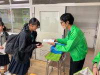 登校時に合わせ、玄関で生徒会執行部が声をかけ、何人もの生徒が募金に協力してくれました。