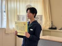 社会福祉協議会の方から取り組みの趣旨についてお話を頂いた後、早速各グループ代表生徒に福祉協議会の方からお弁当が託されました。
