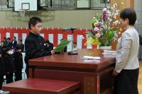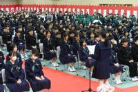 まず、これまで学校を引っ張ってくれた令和7年後期生徒会役員を代表して会長の上出さんより、