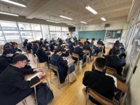 人との距離感や間合いのお話、10秒呼吸法など、ちょっとした心がけの工夫や日々の不安などについても、ユーモアを交えながらやさしい語り口調で、生徒も楽しく参加することができたようです。