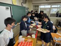 市内3中学校それぞれで、ボランティアに参加生徒が、グループで地域の高齢者のお宅にお弁当を届ける活動です。