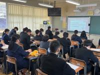 中学校より各種高等学校の受験に向けた日程や手続き、今後の進路日程などについて説明しました。