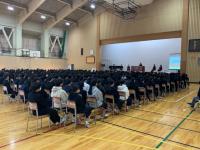 中学校より各種高等学校の受験に向けた日程や手続き、今後の進路日程などについて説明しました。
