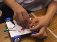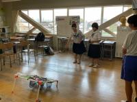 今年度は「身近なものなどを利用して動くものを製作し、競技を行う」という課題でした。乾電池を使って車を走らせ、そのタイムを競うもので、寺井中からは2年生の有志6人が2つのチームを結成し、参加しました。