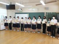 オンラインで行われた全校集会では、ここまでに開催された県大会の各入賞チーム・選手の表彰披露がありました。ブロック大会を勝ち抜き、1つ上の大会で戦ったみなさん、お疲れさまでした。