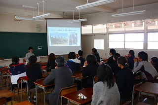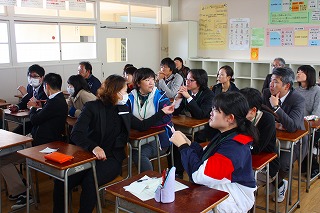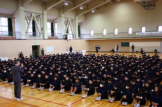 1月17日(金)午後7時より、格技室にて2年学年懇談会(約100名参加)を開催しました。学級委員の方々による職場体験報告に続き、学校から受験勉強の進め方や修学旅行等について説明を行いました。