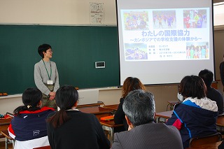12月24日(火)午後、筏井教諭のカンボジアでの青年海外協力隊員としての活動の様子を聞くSUS(若手教員向け研修会)を開催しました。出会いに感謝し、共に助け合い、協力し合い成長していく喜びを実感できる活動の素晴らしさに、参加者一同、深い共感と感銘を覚えました。