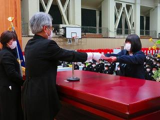 「笑顔と感動」の卒業式 そして感謝 投稿日時 : 2020/03/13 教頭 3月13日(金)、第69回卒業証書授与式を行いました。今年は新型コロナウィルス対応により縮小開催となりましたが、卒業生は凛とした空気の中、素晴らしいゴールの姿を見せてくれました。ご出席をいただきました皆様に、心より御礼申し上げます。 ・式辞 式辞.pdf ・送辞 送辞.pdf ・答辞 答辞.pdf