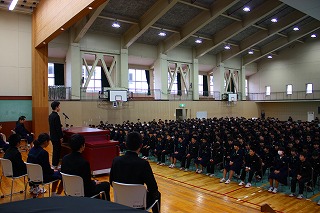 12月18日(水)6限、前期生徒会役員選挙立会演説会を行いました。今回は定数7人に対し2年生8人が立候補し、前回に続き、一部選挙も行われました。演説会の様子からは、伝統を引き継ぎ、より良い寺井中を創り上げていきたいという意気込みが感じられました。