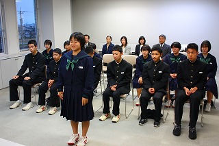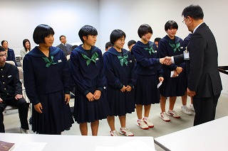 12月6日(金)夕方、根上総合文化会館にて、今月22日から埼玉県で開催されるJOCジュニアオリンピックカップハンドボール大会、同じく25日から大阪府で開催される全国都道府県対抗中学バレーボール大会の激励会が行われました。本校から石川県選抜チームのメンバーとして、ハンドボールは男子5名、女子6名、バレーボールは女子1名が出場します。全国の舞台での活躍を期待しています。