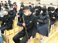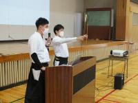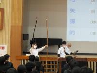 銃剣道と弓道の協会の先生方が来校され、それぞれの武道の歴史や競技のようす等について紹介してくださいました。