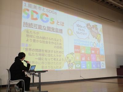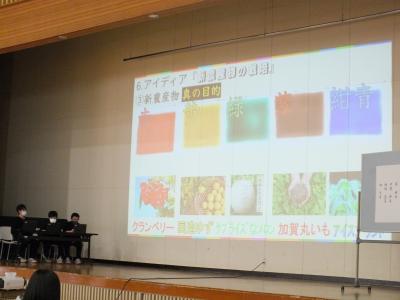 「SDGsの視点から能美市の産業発展」をテーマにした1組の発表では、能美市の特色である伝統産業や製造業をはじめとした数ある産業の中から、特に農業についてのアイデア・提言が発表されました。