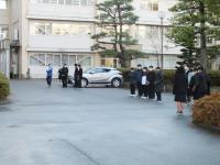 講演会が終了し一部の生徒が帰りのバスを待っていた時、ちょうど小堀さんが会場から出てこられました。