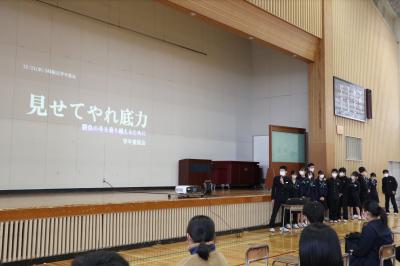 2学期のがんばりをふり返ると共に、後期学年委員が「見せてやれ底力~勝負の冬を乗り越えるために~」と