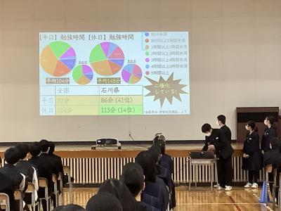 寺井中3年生のみなさんの発表に、たくさんの納得、そして驚きや感動、未来の能美市への期待を感じた「総合的な学習の発表会 ~よりよい能美市のために~」でした。