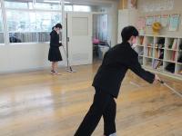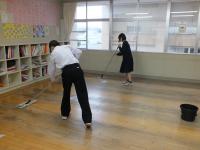 当日は、各クラスの整備部員が自分たちの教室の床にワックスをかけました。