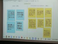 発表に合わせて、小声で(もちろん周囲に迷惑がかからないように、静かな場は壊さないように)隣の人と意見交換しながら聞いている姿にも実は感動しました。友達の発表をしっかり受け止め自分なりに考え、友達と意見交換する姿がありました。