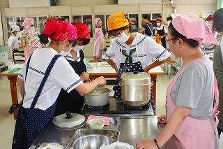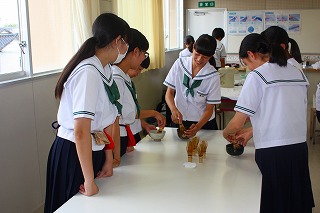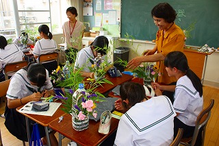 7月4日(水)午後、体験学習講座を開催しました。この講座は、地域で文化・芸能や介護等に携わる約60名の方々を講師としてお招きし、体験学習を行うもので、約20年続く伝統行事です。17講座に分かれた各教室では、生徒たちが生き生きとした表情で、活動を楽しんでいました。