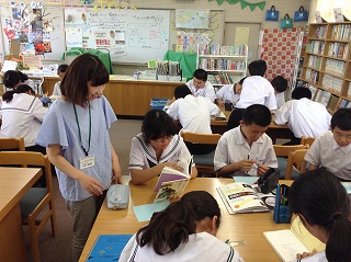 また、1年生国語の「竹取物語」の授業では、図書館を利用して「月」の調べ学習を行いました。教材をより深く学び、読書に対する興味・関心を高めることをねらいとしています。