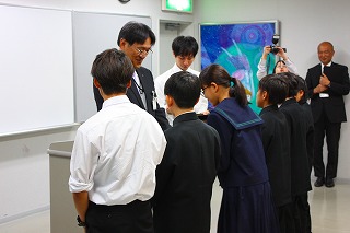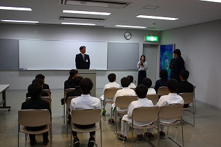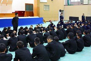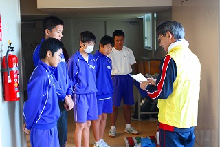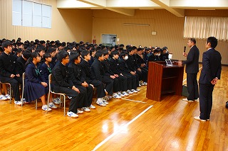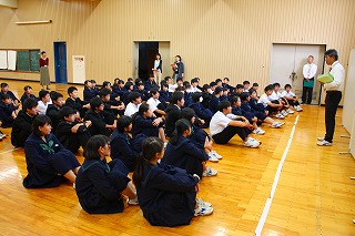 10月10日(水)夕方、根上総合文化会館にて全国大会出場者に対する激励会が行われました。ジュニアオリンピック陸上競技大会に出場する2年の長髙さん、全国都道府県対抗中学バレーボール大会に出場する3年の田中さん、ダンスの全国大会に出場する2年の北中さん、1年の亀田君の4名が大会への決意を述べた後、谷口教育長から激励の言葉をいただきました。