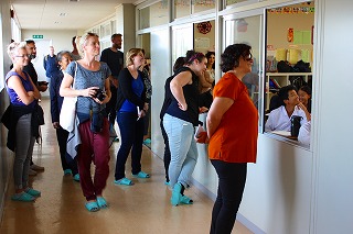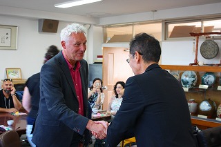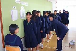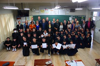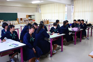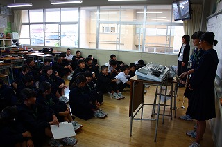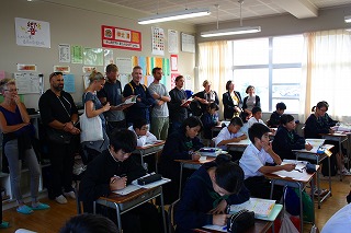 10月22日(月)午後、オランダ・ユトレヒトの18名の先生方が寺井中生徒と再会するために訪問されました。3年1組の生徒が5月の修学旅行で、英語学習の一環として能美市や寺井中を紹介した英文の手紙を渡したことがきっかけで、オランダの中学生からの手紙も届けてくださいました。訪問された先生方は、授業を見学しながら、生徒たちとの交流を楽しんでいらっしゃいました。