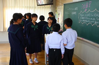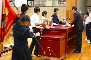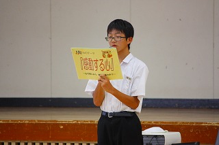 10月3日(水)6限、10月の全校集会を開催しました。能美新人大会などの表彰伝達の後、今月の心のテーマに合わせて、校長先生から「感動(感じたら動く)」について、また、通級指導担当の木村先生から「違いを認める大切さ」についてお話がありました。最後に生徒会からは「赤い羽根共同募金」のお知らせも行いました。