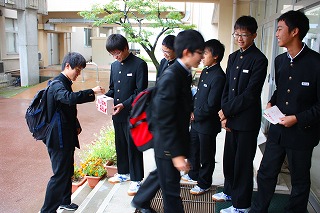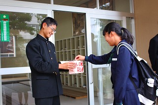 生徒会では3日間、登校時の生徒玄関や職員室で赤い羽根共同募金を行いました。この活動が、地域の福祉活動やさまざまな支援に、少しでも役に立つことを願っています。