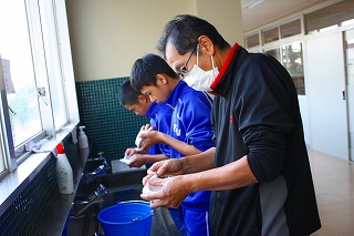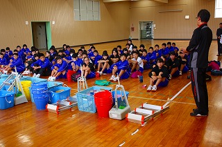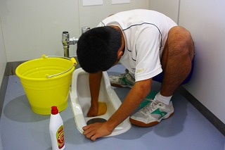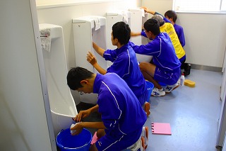 10月13日(土)早朝6時半より、かが能美掃除に学ぶ会のご指導のもとトイレ掃除ボランティアを行い、生徒会の呼びかけにより集まった約60名の生徒が取り組みました。参加した生徒からは、「すっきりした」「とても楽しかった」「心もきれいになった気がする」などの感想が聞かれ、満足感いっぱいの様子でした。