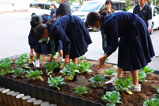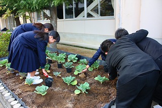 10月24日(水)放課後、環境部が前庭に葉牡丹を植えました。冬には鮮やかなグラデーションが楽しめそうです。