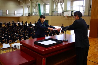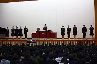 2月20日(水)6限、2月の全校集会を行いました。校内書き初め大会や部活動の各種大会などの表彰伝達の後、校長先生から「日々の積み重ねの大切さ」、生徒指導部から「交通安全」、生徒会から来月の心のテーマについて、お話がありました。