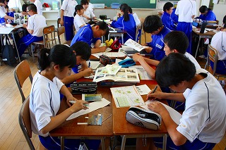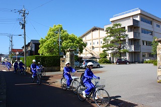 5月23日(木)午前、1年生は寺井見て歩きを行いました。出発式の後、自転車で校区内を回り、能美防災センター、歴史民俗資料館、狭野神社などを見学し、ふるさと寺井の魅力を確認しました。また、午後は班ごとに壁新聞づくりに取り組みました。