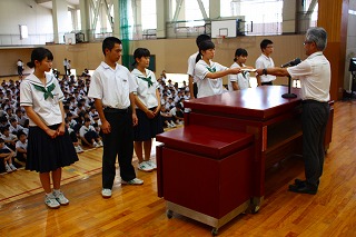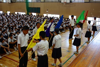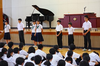 7月全校集会(団抽選・後期生徒会役員任命式)