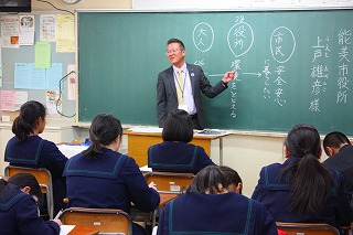 1月17日(金)5・6限、1年生の職業講話「生き方と進路を考える講座」を開催しました。10名の地域の講師の方から、「生き方」や「仕事」に関する貴重なお話を聞き、自分自身の将来や進路について考える良い機会となりました。