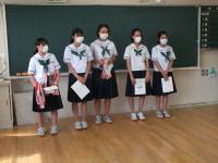 能美中学校陸上競技大会、県選抜ソフトテニス大会等の表彰披露が行われました。