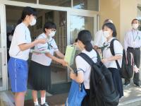 北陸地方の梅雨入りが発表され、あいにくの雨模様でしたが、今週初めから学級ごとに参加してくれている2年生、そして後期生徒会役員選挙立候補者が校門・玄関に立ちました。
