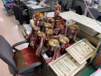 獲得した賞状やトロフィーなどを、報告を兼ねて置くのですが、ブロック大会直後の校長先生の机が