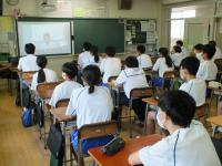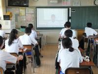 各教室で聞いている生徒のみなさんも、真剣に話しに耳を傾けていました。