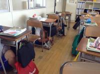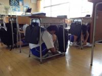 地震を想定した身の安全を守る「3つの安全行動」を実戦する訓練です。